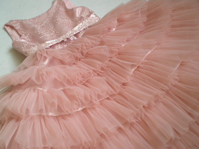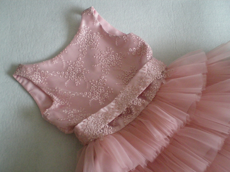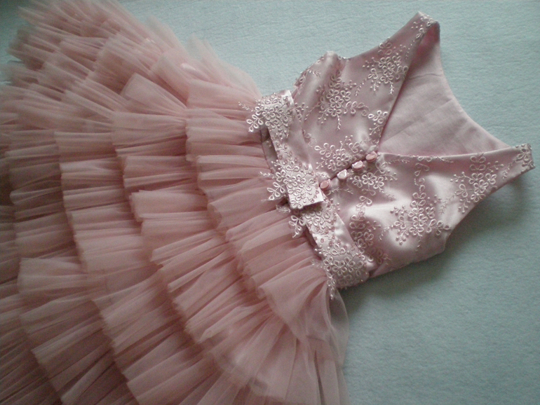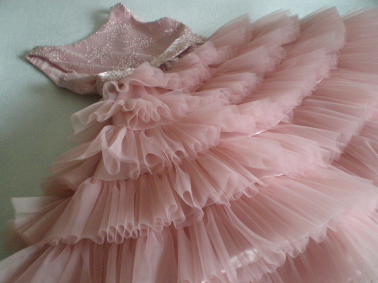 Платье получилось пышным, цвет "пыльная роза", на фото этого немного не видно)) .