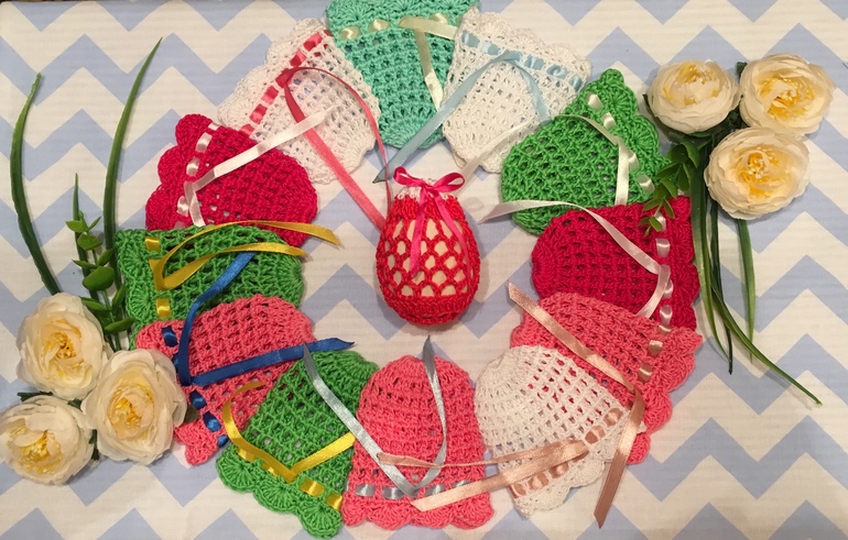 Вязание крючком (РАБОТЫ И СХЕМЫ)Для ярмарки связала мешочки для пасхальных яиц