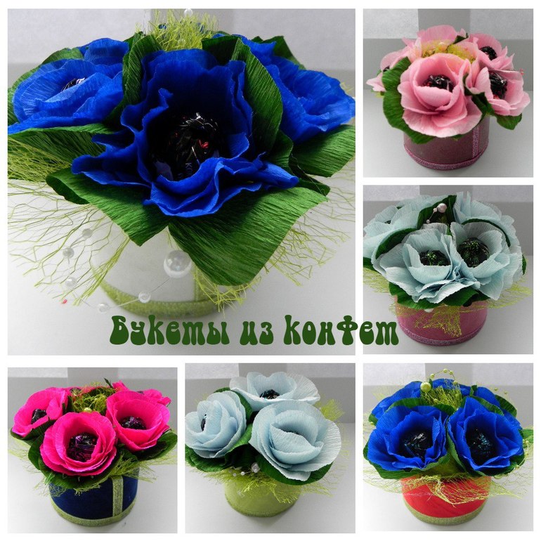Букеты из конфет. Свитдизайн.В срочном порядке к 8 Марта изготовились такие нежные букеты. Очень понравилось работать с гофрированной бумагой, да и настроение от созидаемого повышается! Жаль, что не всегда удаётся выпасть свободной минутке для сотворения рукоделок! Мастерицам низкий поклон и благодарность Вселенной за созидание! Вы - умницы, не останавливайтесь на достигнутом, дерзайте! У нас всё получится, вот увидите!