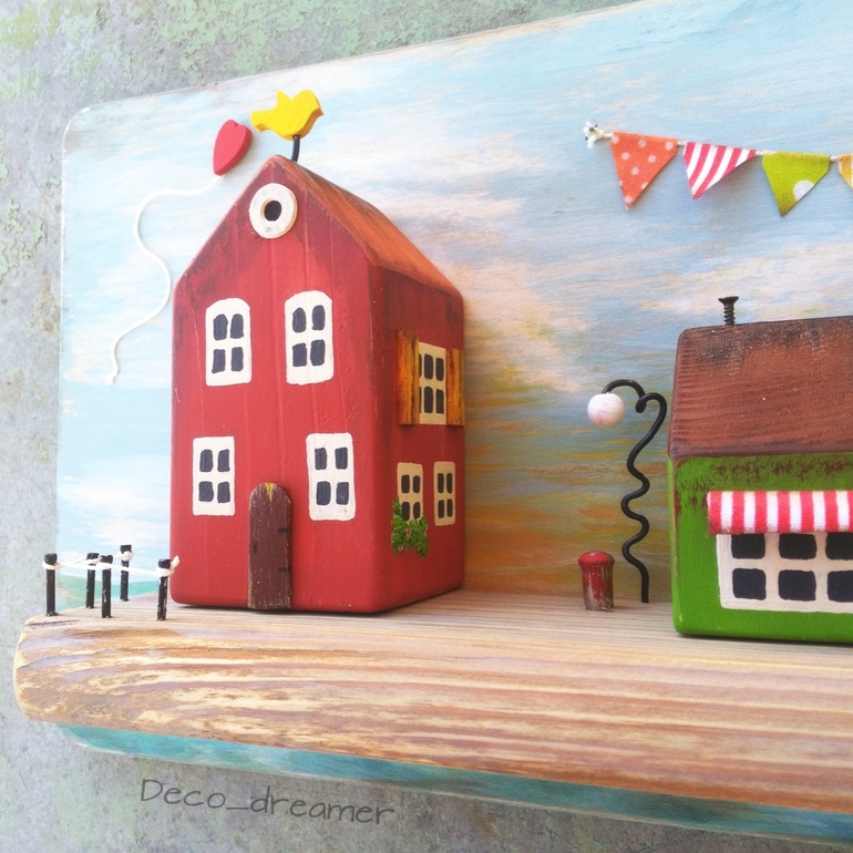 Работа с деревомПокажу крайнюю работу-прибрежный городок на полке🏘🌊. Многие знакомы с современных увлечением поклонников хендмейда-driftwood. Изготовлением декора из деревяшек, выброшенных морем на берег, испешренных бороздками от маллюсков и просоленных волнами. Но такое увлечение доступно только жителям прибрежных городов. А что остается нам? Берем простые дерев яшки и строим свой приморский квартал🤗 .