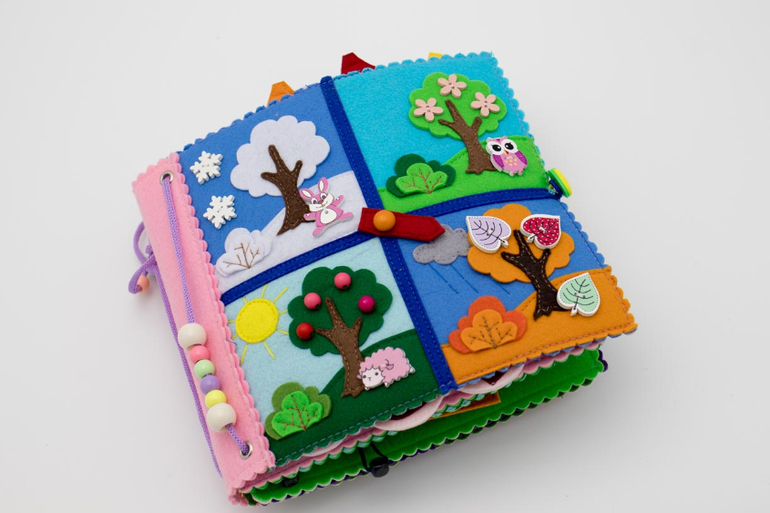 Развивающие игрушкиДобрый день. Спешу поделиться фотографиями очередной развивающей книжки из фетра. Назвала ее по обложке : "Времена года". Очень удобна для путешествий с малышом.