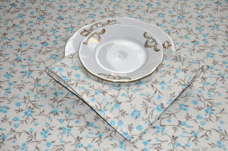 Набор скатерть и салфетки (6 шт.) "Незабудки." Много фото!!!!