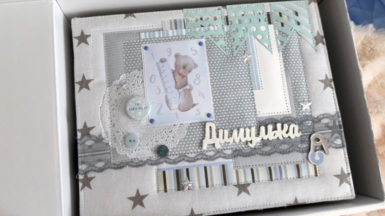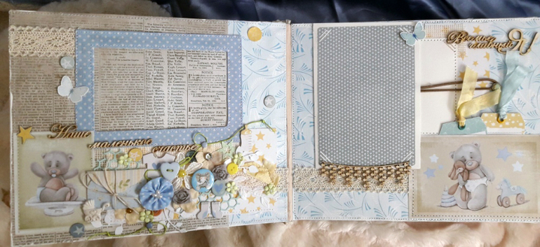 СкрапбукингВчера доделала альбом для маленького Дим Димыча. Формат 28х23 см. на 8 разворотов. поместится ок.30 фото стандартного размера.Использовано 3 набора сочетаемой друг с другом бумаги (разных производителей).коробка для хранения-в комплекте.Альбом получился добротный, с кучей деталей(что я ооч.люблю), минимализм не для меня(хотя есть и исключения). В общем, кому интересно, велкам к просмотру.