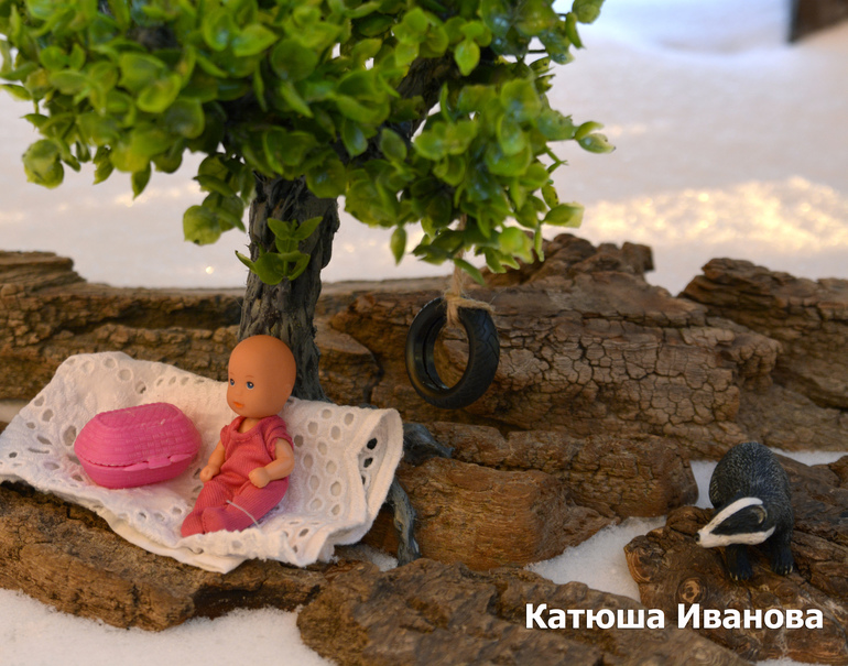 А ещё под деревом мы устраиваем пикнички для пупсиков и лесных животных.