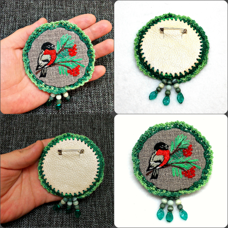 Основа - ткань льняная, с обратной стороны - нат.кожа. Обвязана крючком.