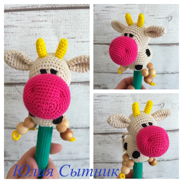 Подарки, игрушки, погремушки для новорожденных.Привет! Совсем недавно Катерина Архипова сделала МК своих знаменитых коровок-погремушек. А вот и эти коровки в моем исполнении!!!