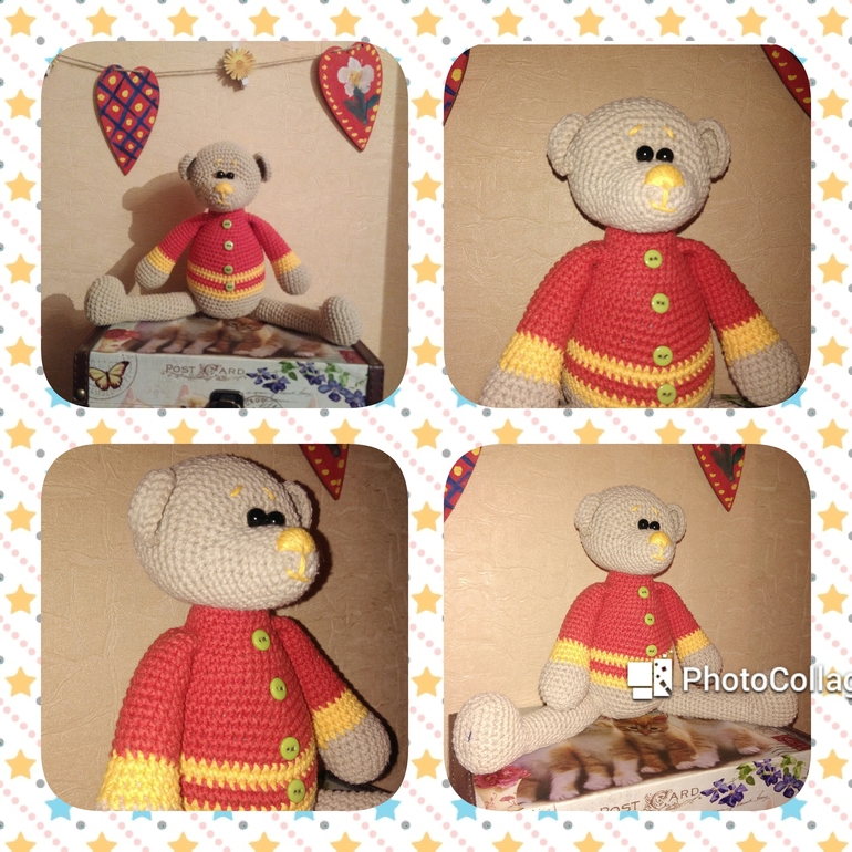 Вязанный мишка выполнен по замечательному МК Катерины Архиповой (https://m.babyblog.ru/community/post/rukodelie/3206035), спасибо ей огромное, описан каждый шаг в изготовлении мишутки.