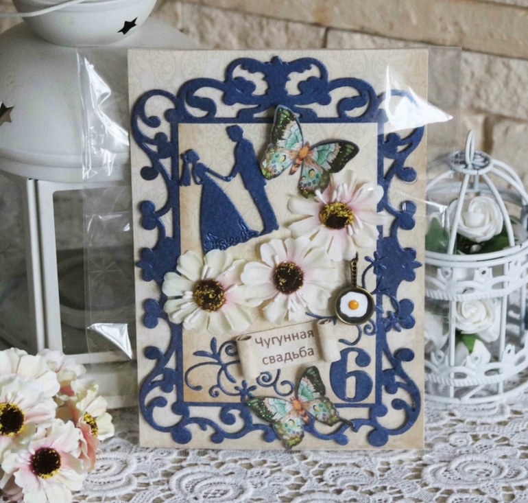 Открытка юбилейная "6 лет-чугунная свадьба"