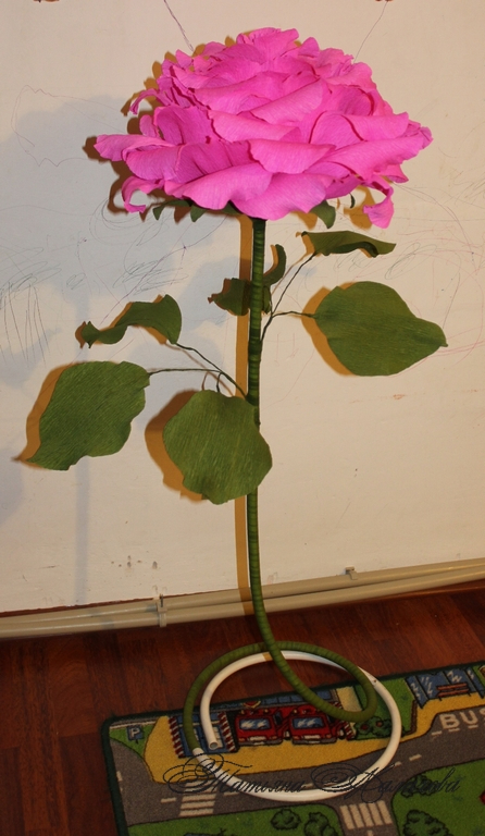 Изделия из бумаги, папье-маше, квиллинг.Покажу мою пробную розу из гофрированной бумаги. Делала в подарок воспитателям сына на день дошкольного работника еще осенью))) Она стала украшением многих праздников, но стояла долгое время возле окна и потому уже выгорела, хотя от этого стала выглядеть более натурально.