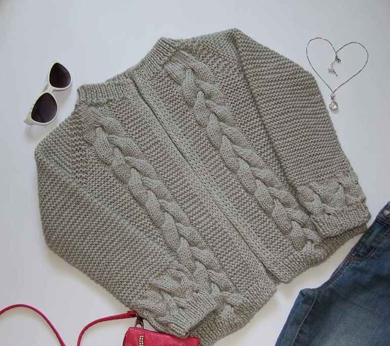 Свой кардиган я тоже вязала из толстенькой пряжи. Я думаю из такой пряжи получается скорее бомбер, достаточно объемная кофта. Мне нравится такой вариант. (например https://www.youtube.com/watch?v=9dft6OZNIMs).