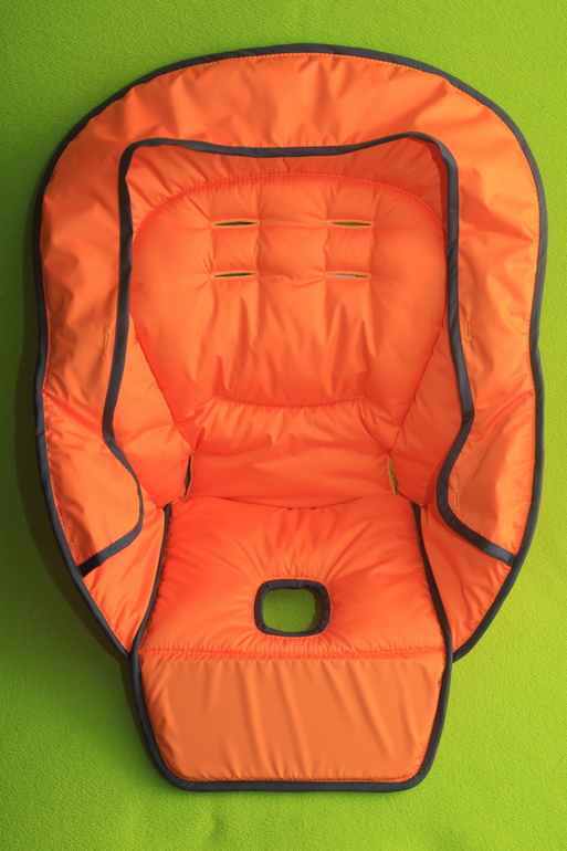 2. Чехол на стульчик для кормления Peg Perego Tatamia. Однотонная плащёвая ткань с водонепроницаемым полимерным покрытием внутри, наполнитель - холлофайбер плотностью 500 гр., все прорези под ремни и отстрочки выполнены, жёсткая пластиковая вставка в нижней части чехла присутствует.