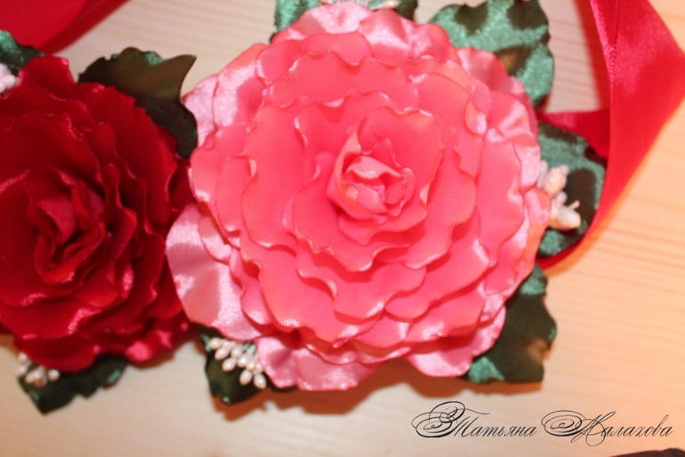 Цветы из ткани и форма. Канзаши. Украшения для волос.Делала в подарок на ДР бабушке мужа еще осенью. Достаточно крупные, фиксирующая лента шириной 5 см, диаметр самого большого цветка примерно 12 см.
