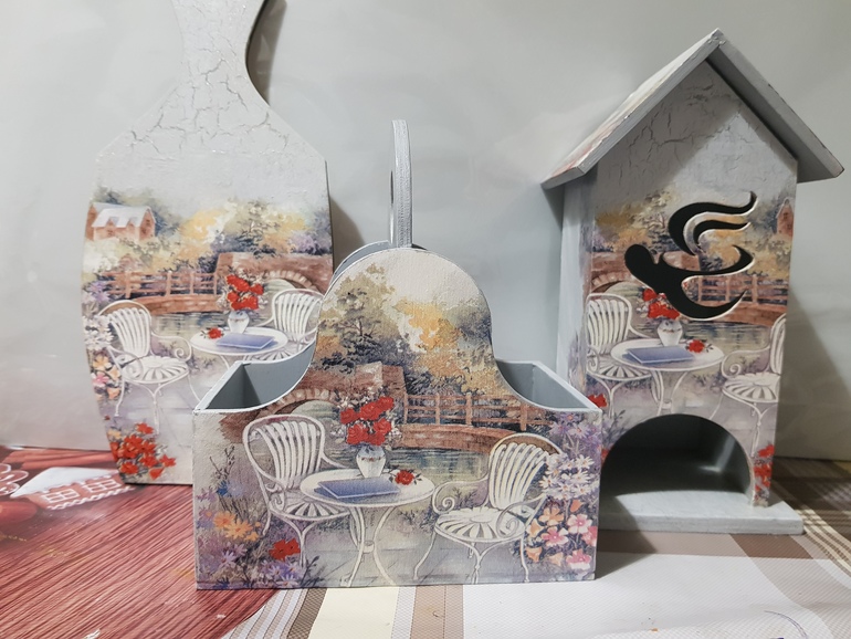 Какой красивый комплект на кухню - располагающий к приятному общению за чашечкой чая со сладостями (или бокальчиком вина с сырком и фруктами)))