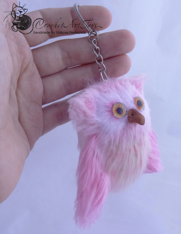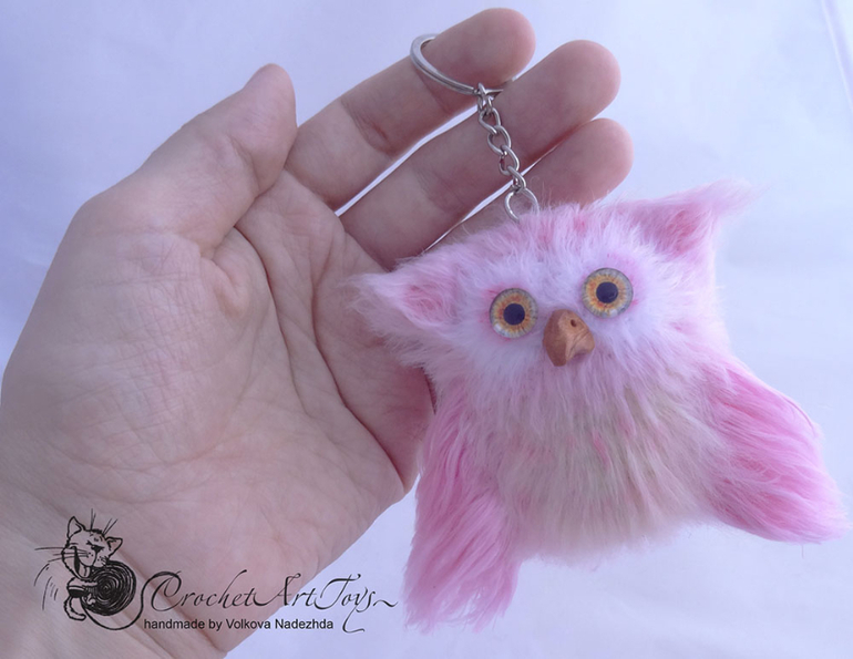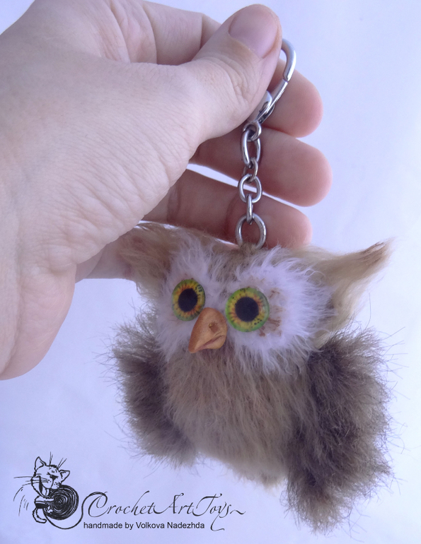 Амигуруми (вязаные игрушки)Связала еще 2 брелочка Совушек. Мк Галины Ведерниковой, пряжа разная, крючок 1,5. Размером 7-8 см. Тонированы масляной пастелью, клювики слеплены из полимерной глины.
