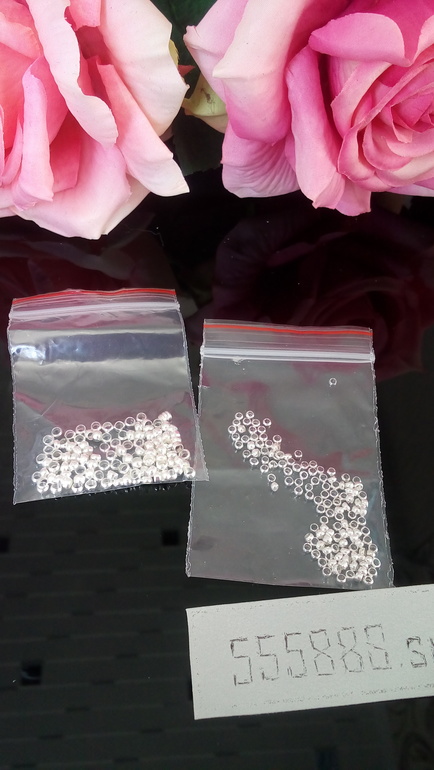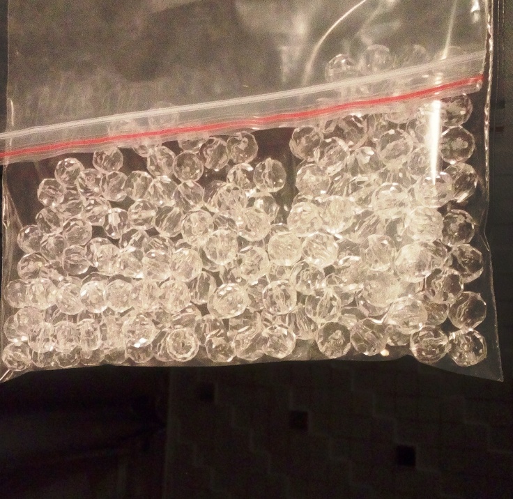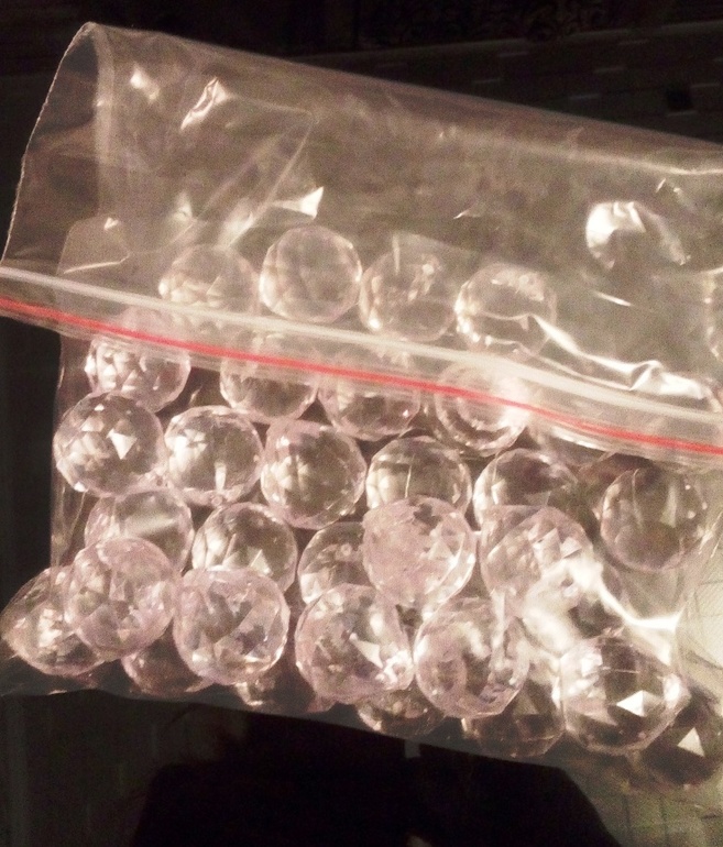 мм. - 160 шт., бусины 4 мм. - 324 шт., подвески акриловые «шар» 30 мм - 34 шт., зажимные железные бусины кримпы - 198 шт., крючки для нитей (подойдет и двойное кольцо) 34 шт., колечки для подвесок - 34 шт.