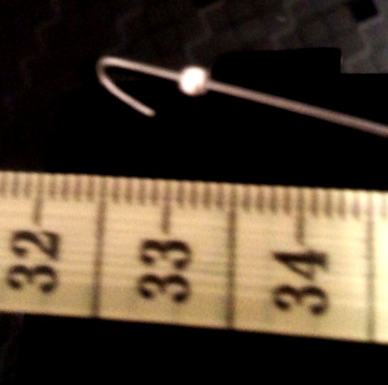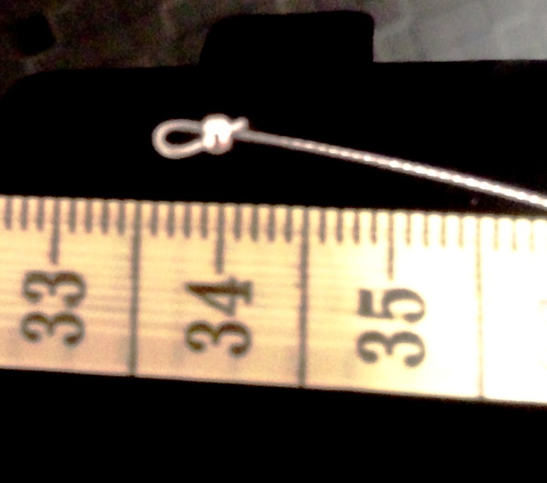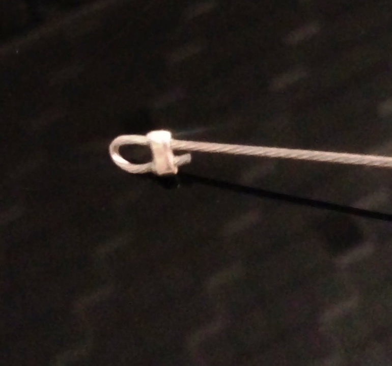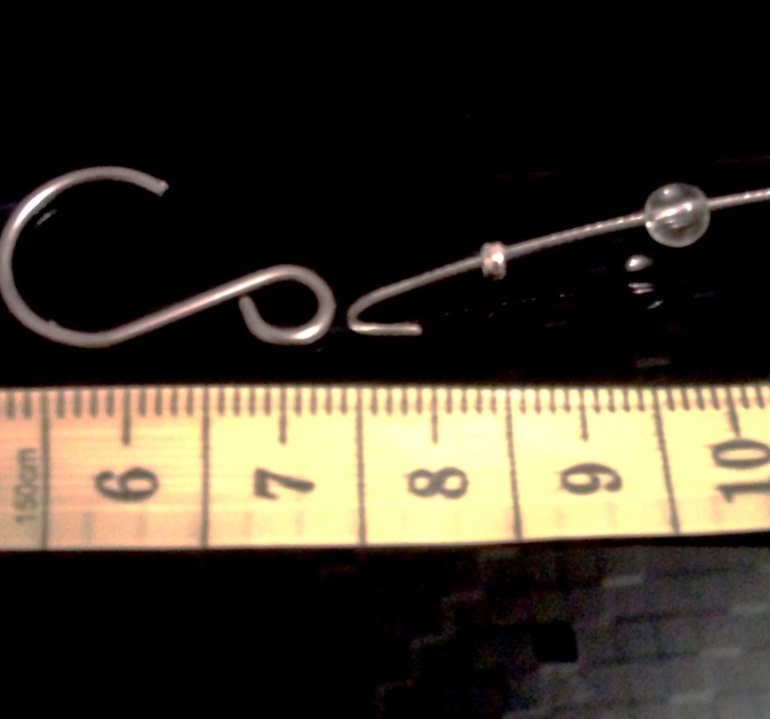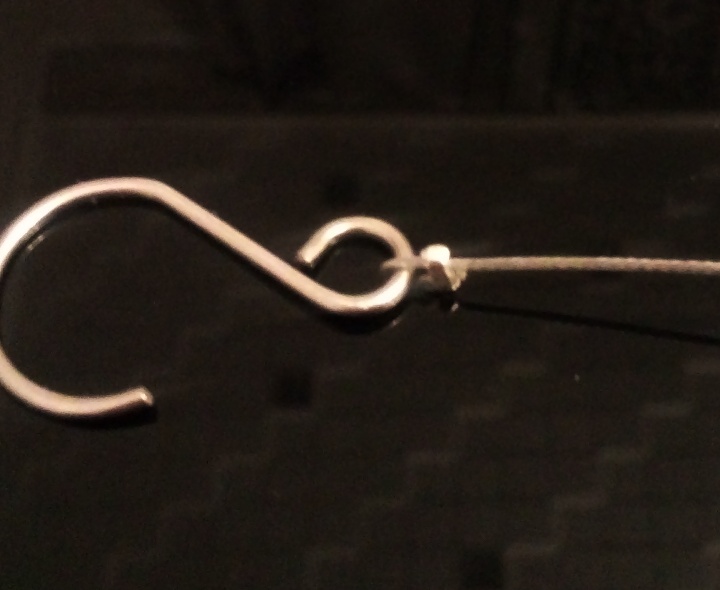 5. После того как нить будет готова. Нужно завершить нить крючком. Для этого вденьте кримп, возьмите крючок, загните проволоку на 5 мм!, вденьте проволоку в крючок и кримп, раздавите кримп.