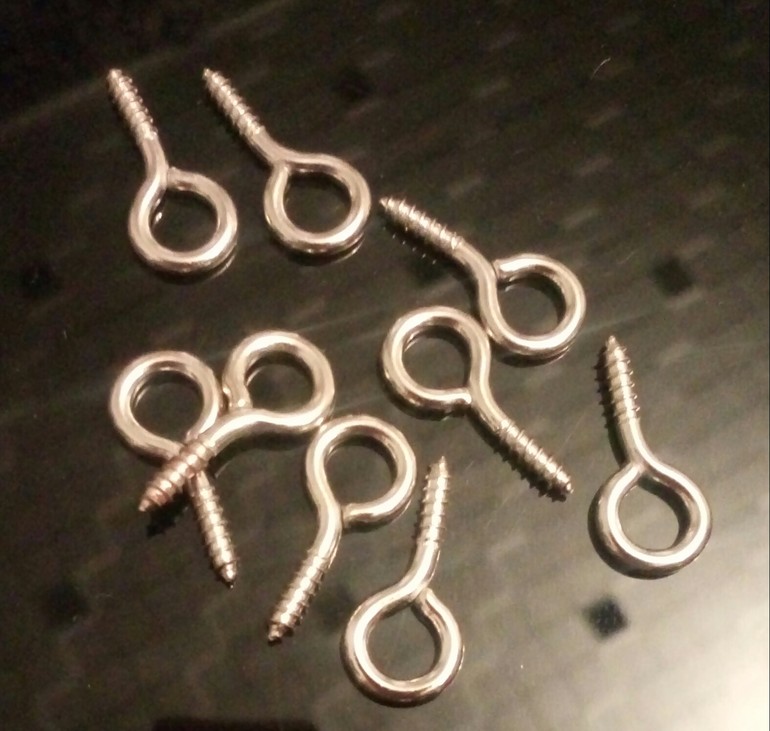 7. Теперь вам нужно измерить проем и разделить это расстояние на 34. Сделать отверстие в карнизе тонким сверлом. Вкрутить шурупы в проем. Вдеть крючок с нитью бусин и подвеской в крючки шурупов.
