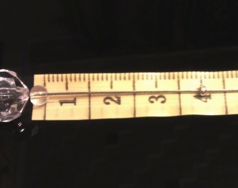 Вденьте маленькую бусину 4мм, большую 12 мм и опять маленькую бусину, кримп. Положите нить на линейку. Возьмите плоскогубцами вдетый на нить кримп. От последней бусины отмерьте 3,5 см., раздавите. На этой раздавленном и прочно сидящем на леске кримпе теперь будут держаться бусины.