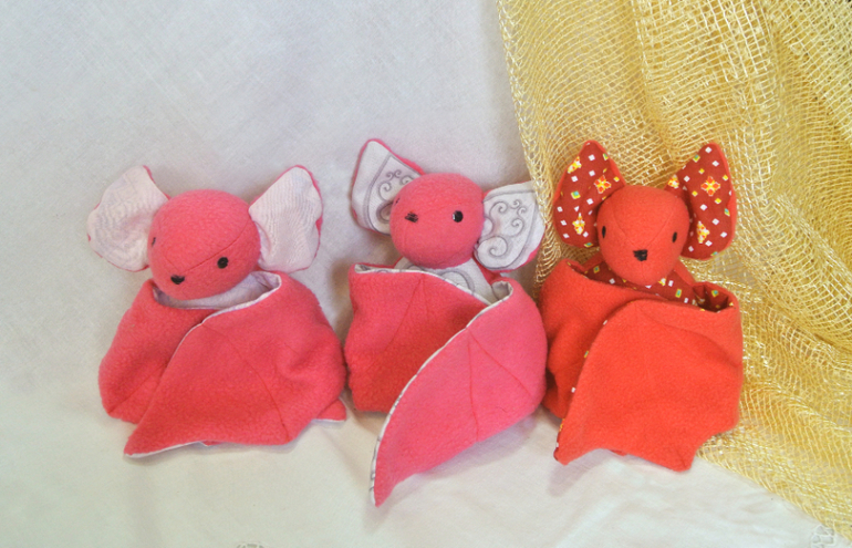 Игрушечный мир - животныеДочка подруги - Ксюша, 5 лет, однажды очень долго не спала, до часу ночи примерно. Подруга пожаловалась. Я обозвала ребенка летучей мышкой - час ночи это уже даже не поздняя пташка. Ксюшке стало интересно всё-всё про летучих мышей. Так в разговоре с ребенком родилась идея, а несколькими часами позже и игрушка. Летучая Ксюшка мышка.