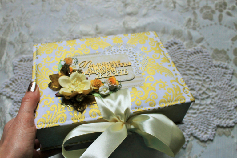 СкрапбукингВ такой солнечной коробочке можно хранить фотографии или другие памятные мелочи.