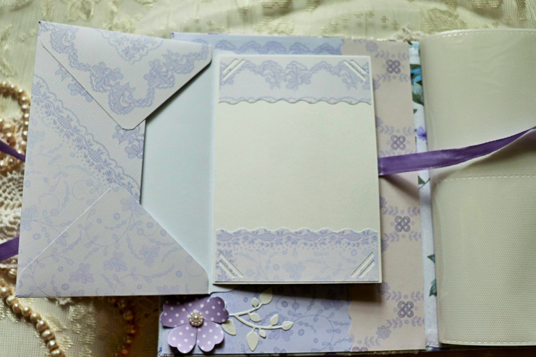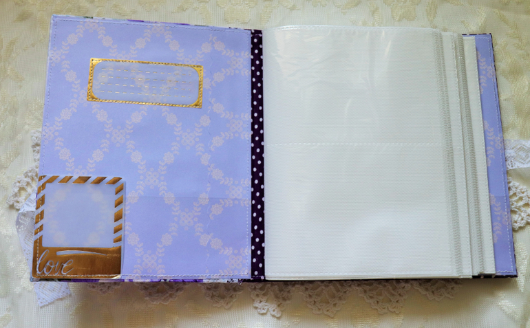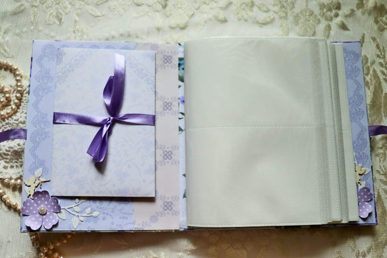 В этом свадебном/семейном альбме форзацы оформила как в скрап-альбоме - раскладкушки и конвертик для фото ))