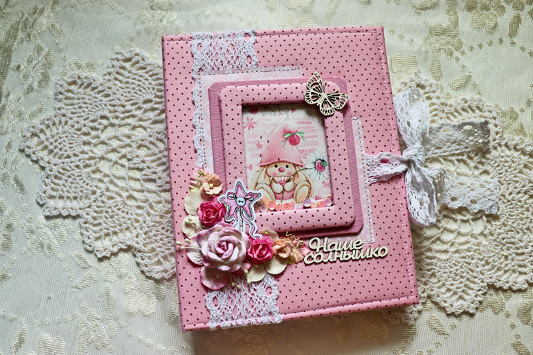 На форзацах альбомов с зайками есть кармашки для дополнительных фото