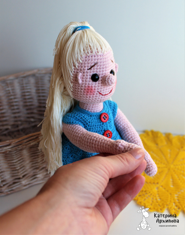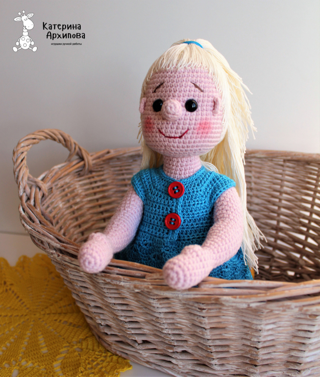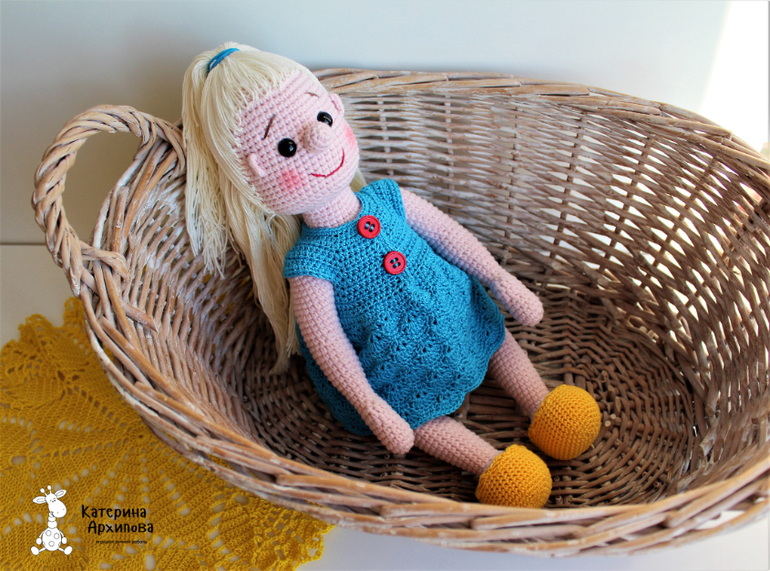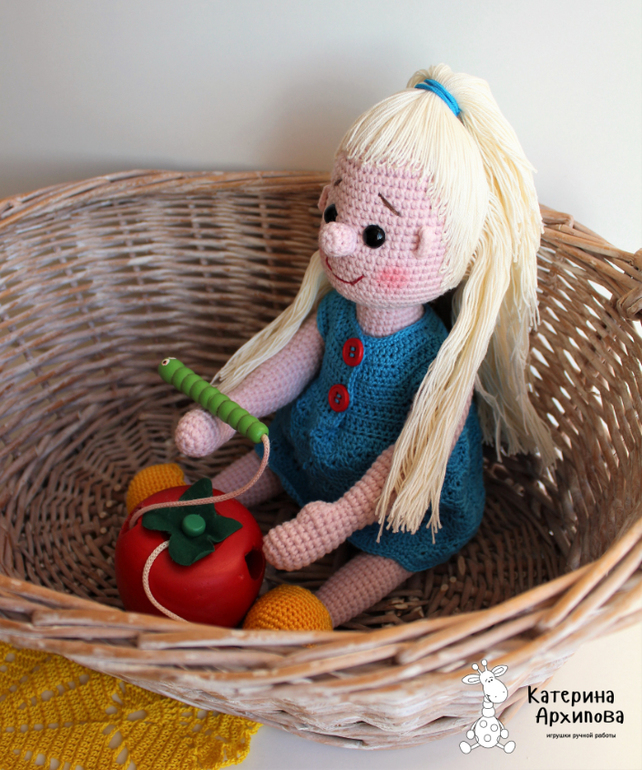 Эта куколка, пробная так сказать...сто лет не вязала таких, ну и она на суставах, по этому я как-то долго и неуверенно с ней возилась...))) Ростик 31см.
