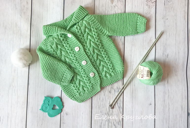 Вязание спицамиА еще у меня сегодня кофточка для девочки 6 месяцев. Кофточка связана из хлопка от Gazzal. Ушло ровно 4 моточка. Под кат еще 1 фото