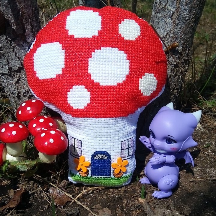 Вышивка картин. Крестиком, гладью, бисером, стразами, лентами, схемы по вышивкам, процессыДля обмена рукодельными "кривульками" сделала то, что давно хотела, но всё никак руки не доходили - домик-мухоморчик из ВК. Уж очень он мне нравится, но, как водится, для себя некогда, сапожник без сапог...
