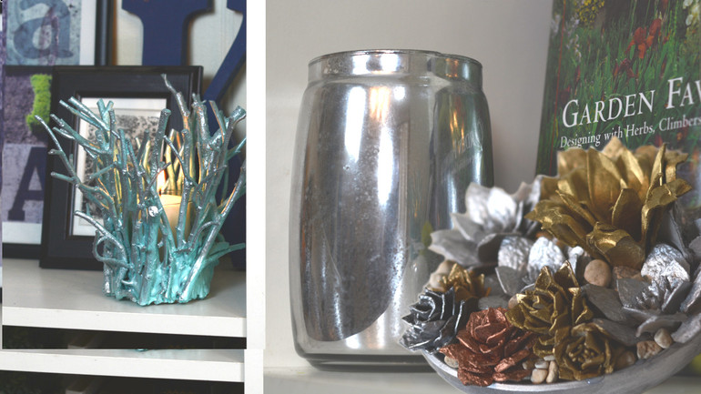 Для зеркальной вазы вам потребуется: подходящая по форме банка, распылитель и краска с эффектом зеркала. Я знаю таких две: Krylon Looking Glass и Rustoleum Mirror Effect. Пробовала и ту и другую, Krylon дает более зеркальный эффект, но дороже, и ее сложнее купить. Rustoleum продается в Леруа.