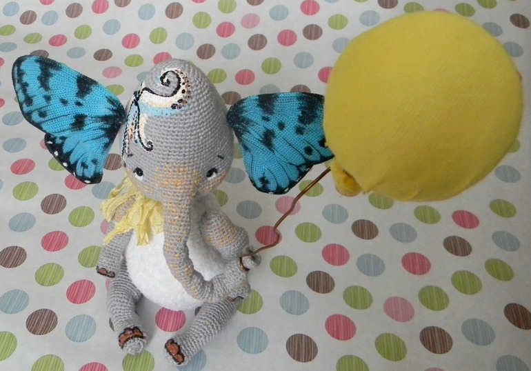 вязаная игрушка слонька Наташа с крыльями бабочки