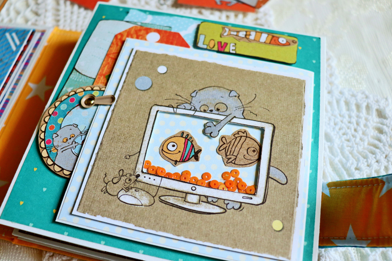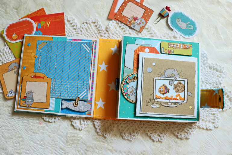 Катюш, альбомчик мимимимиии... или мяу-мяу не знаю, что не разворотик - то улыбка - как же интересно и весело оформлены странички - СУПЕР!!! Миник великолепен - Басик создал настроение всему альбомчику!!!