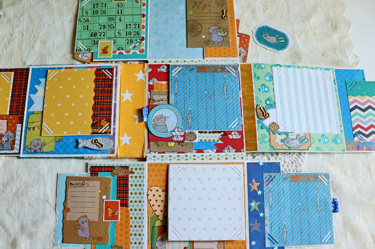 У меня было много остатков-обрезков от басиковских коллекций, а формат альбома прекрасно позволил их использовать )))