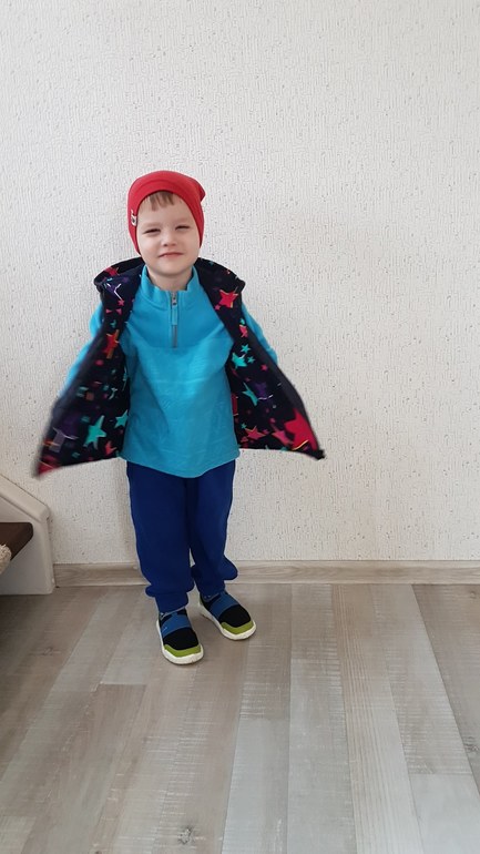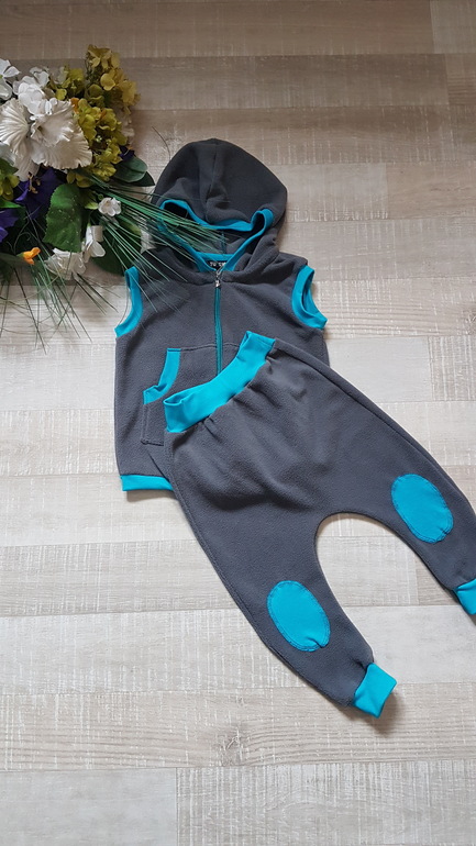 Под кат остальное. Сшила штанишки из футера и жилетка.Вверх стёжка,а подклад трикотаж.
