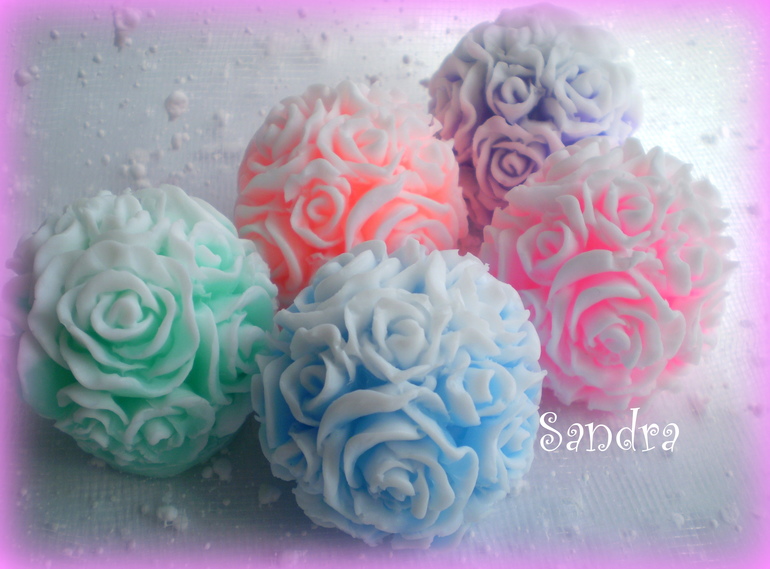 Мыло и косметика своими рукамиПолучила новую форму из Китая - шарик из роз. Залила вот такой наборчик. 🙂 Шарики небольшие, по 30 гр, диаметром 4 см.