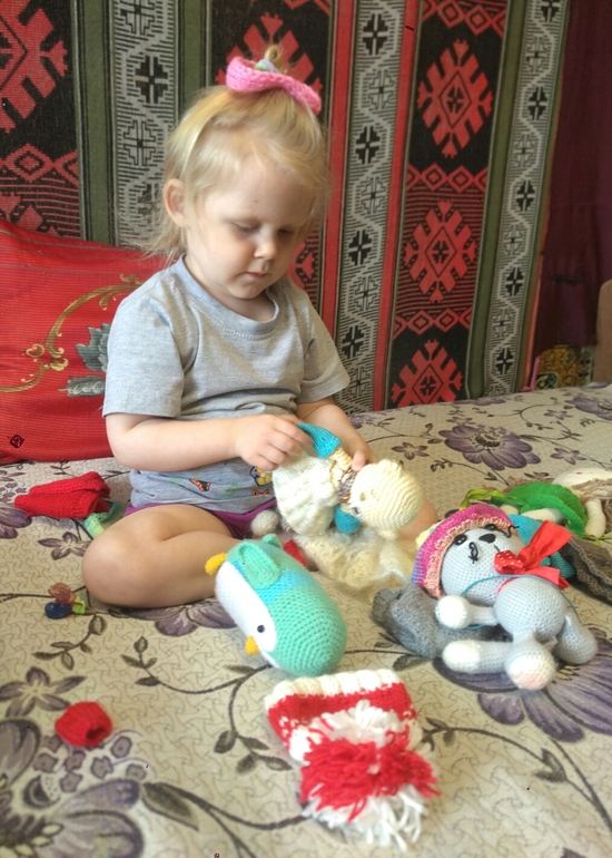 3 фото слоник невероятно мягкий и классный! Ника с удовольствием играет с мишкой и одевает кукол. Мы теперь гулять не выходим пока всех не утеплим