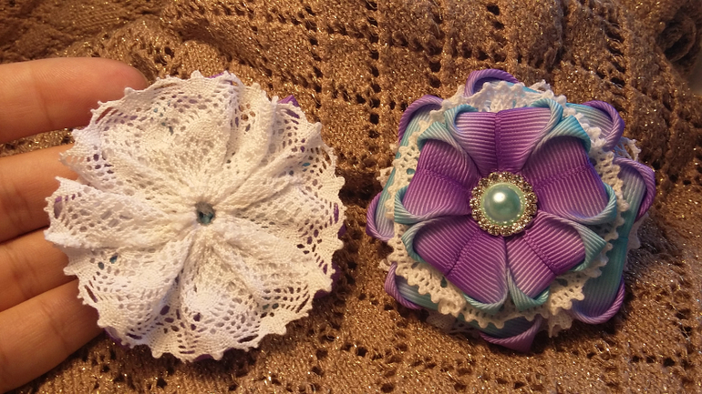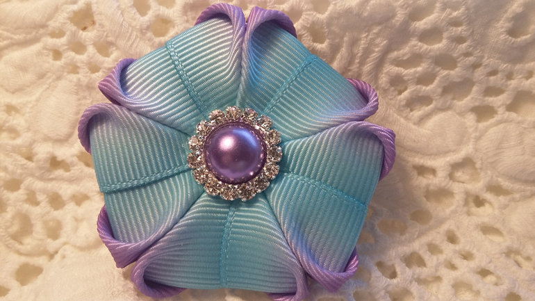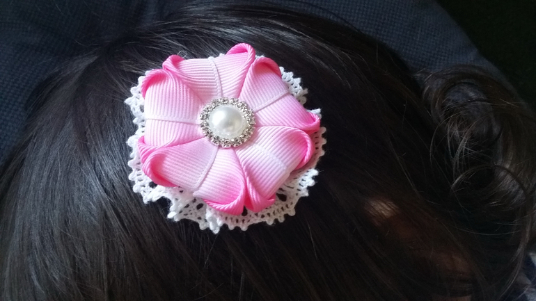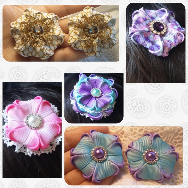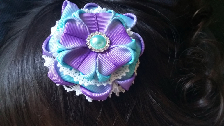 Цветы из ткани и форма. Канзаши. Украшения для волос.За пару ночей родились вот такие цветочки. Удалось даже на волосиках своей дочки сфотографировать путем титанических усилий (очень уж не сиделось ей на месте:)))Мало слов и много фото: