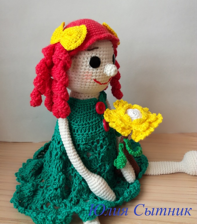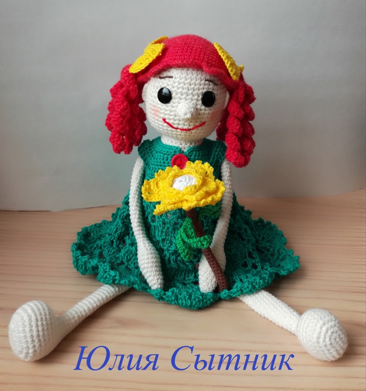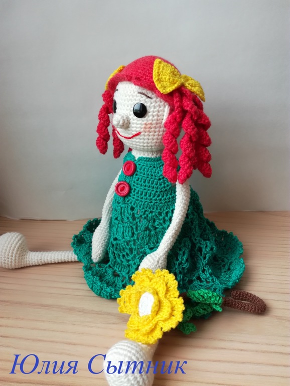 Куколка по МК Катерины Архиповой связана из полухлопка, платье снимается, цветочек на проволочном каркасе, рост 32 см.