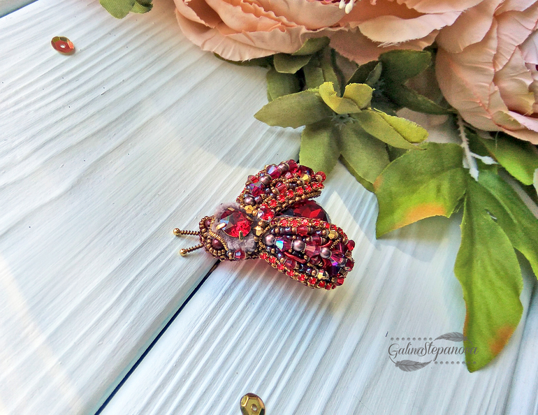 Бисер. Бисероплетение. Украшения из бисера.Всем привет! Сегодня покажу вам вот такую объемную брошь "Красный жук" - вышита японским бисером, кристаллами и стразами Swarovski, итальянскими пайетками, биконусами Сваровски, жемчугом и шатонами Сваровски, золотой канителью, трунцалом и синелью.