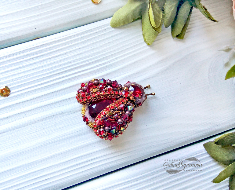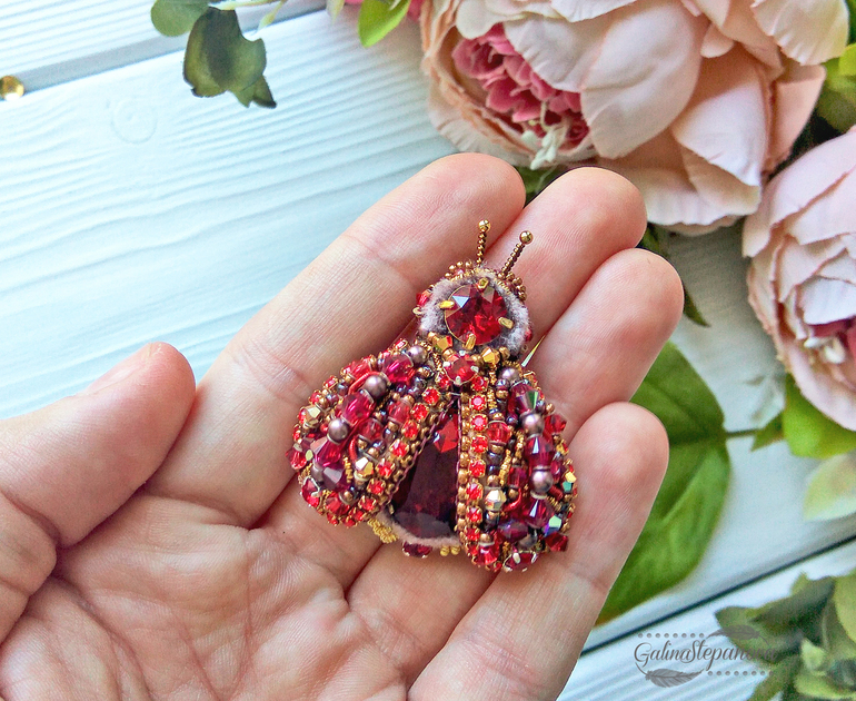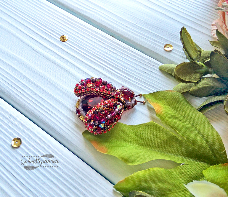 Брошь ручной работы "Красный жук"