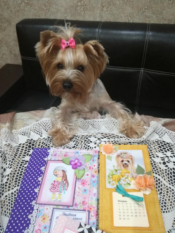 Дневник уже старшенькая дочка себе определила на следующий учебный год. А вот календарик понравился нашей Варе, наверно, увидела своё отражение.