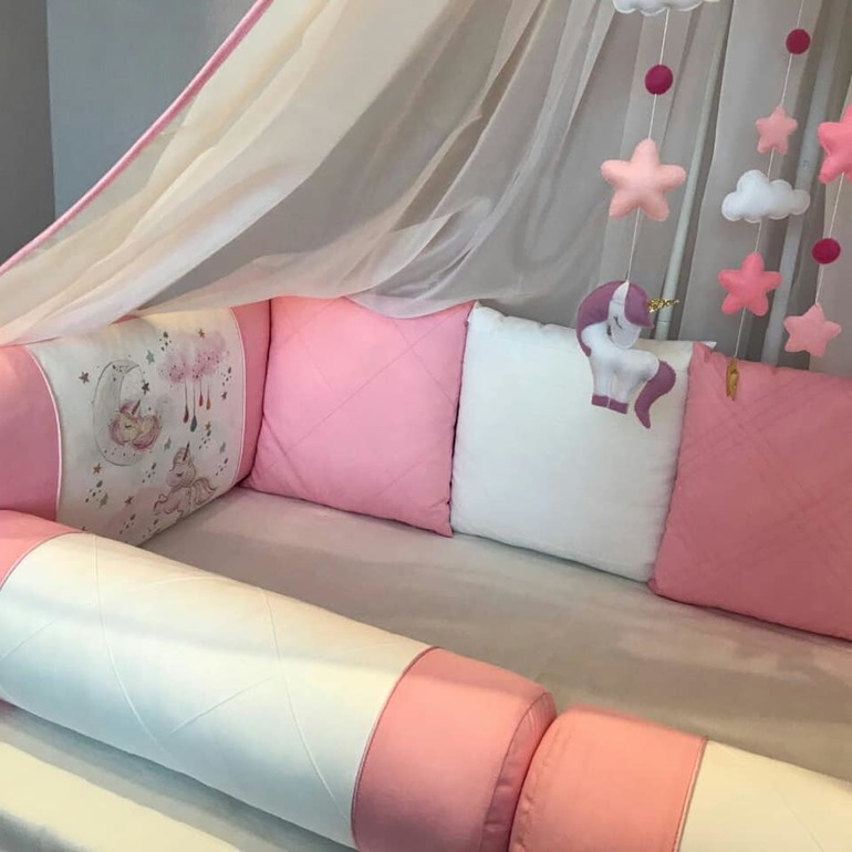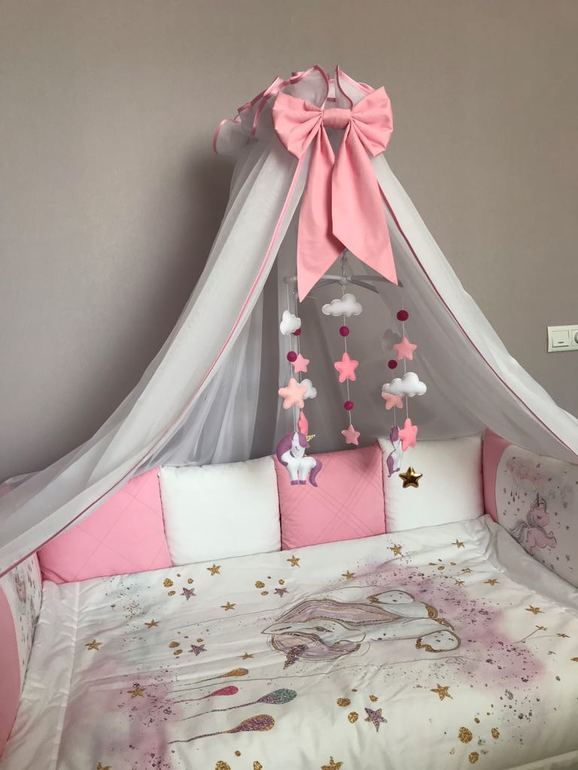 Шитье одежды, выкройки, ремонт одежды, шторы, швейные машины (уже приобретенные)Привет всем! Хочу показать вам очень нежный и красивый комплект в кроватку) Комплект сшит из сатина премиум. Бортики с защипами. 2 бортики с рисунками. 2 бортика-валика. Все чехлы съемные. Также в комплект входит 2 простыни на резинке, балдахин, одеяло с рисунком и первый мой мобиль в кроватку)) очень мне нравится шить из фетра)) Жалко , что вообще нет времени, столько идей в голове, хочется побыстрее их воплотить в жизнь)) Под кат очень много фото! Хотя так тяжело фотографировать без детской кроватки, особенно балдахин))