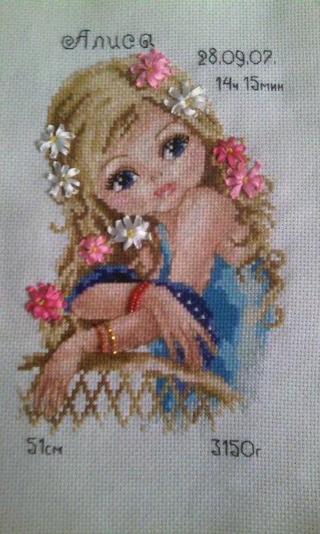 я вот такую вышивала, только она для 2 девочек была и большая, тк данные тоже внутри были, найду покажу)))