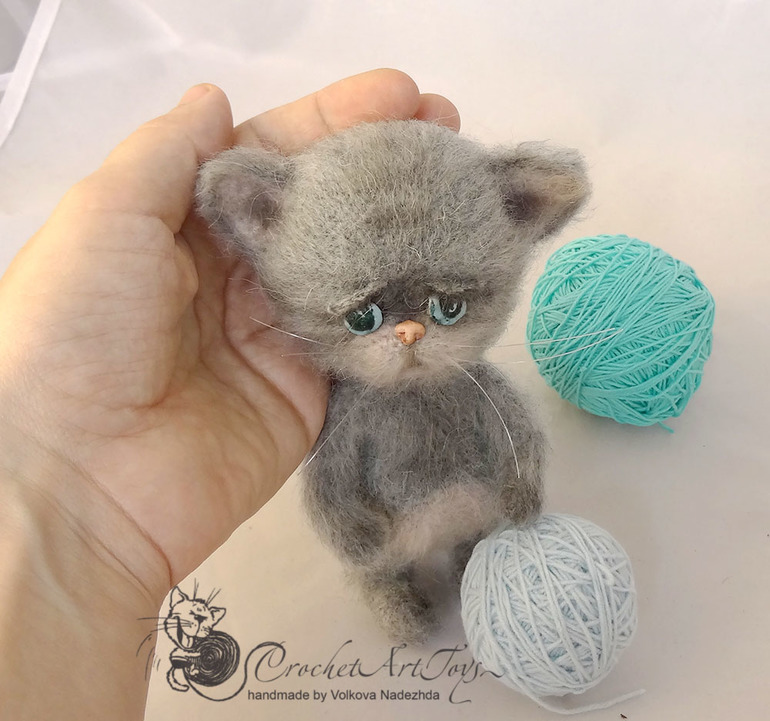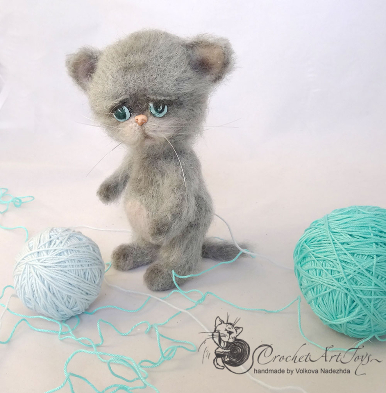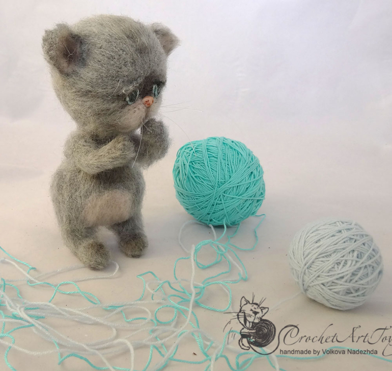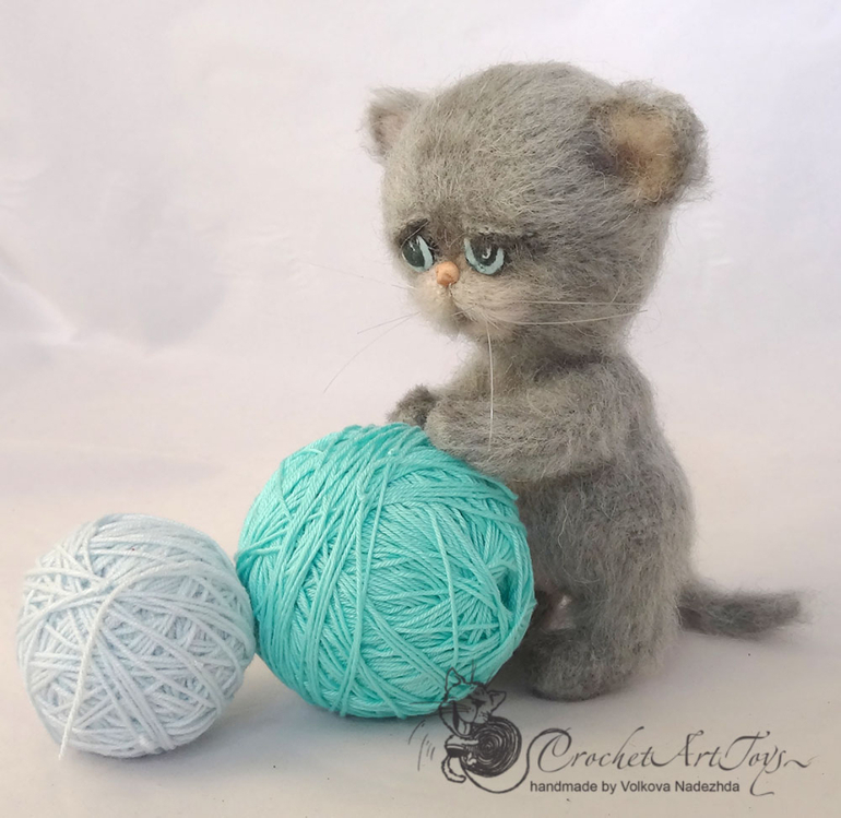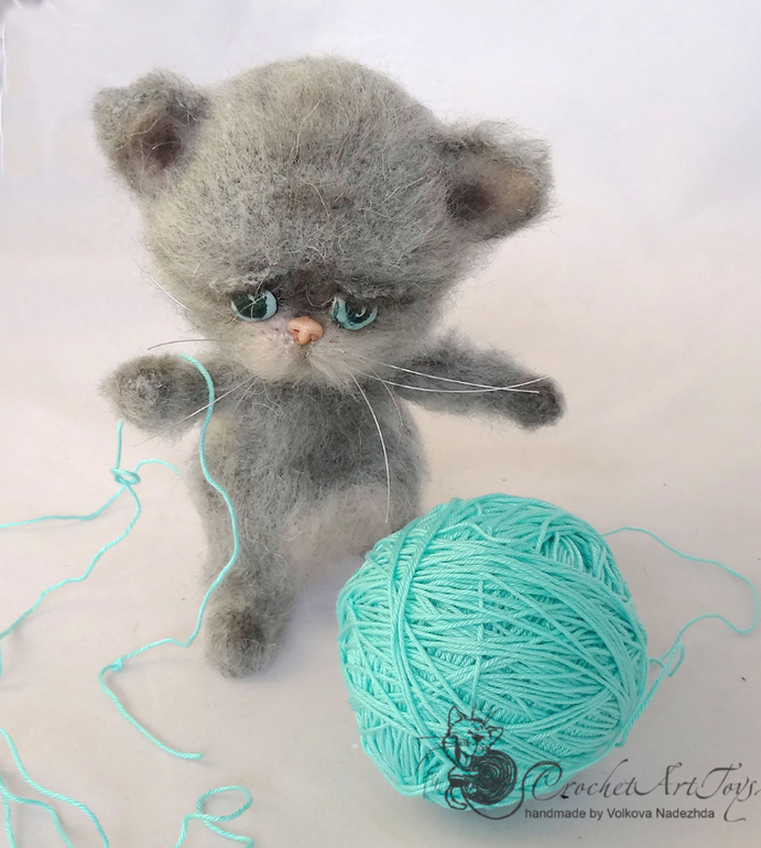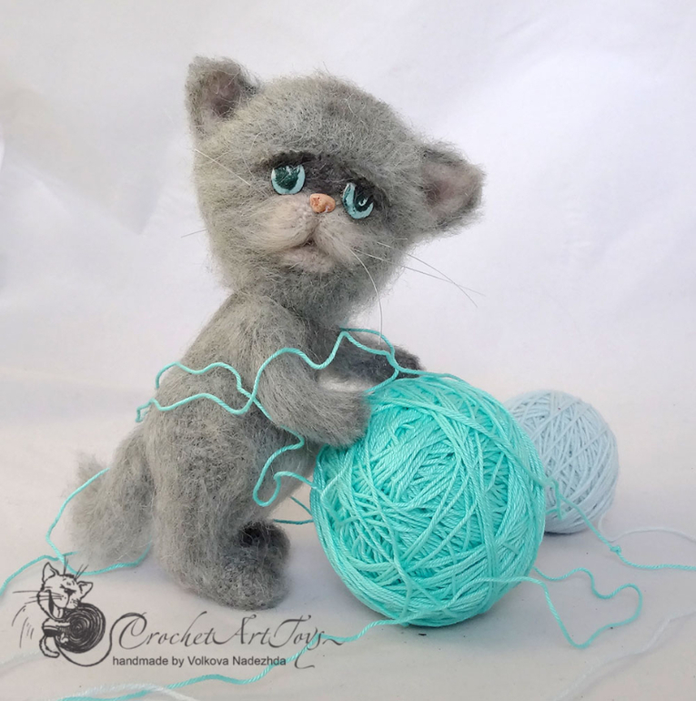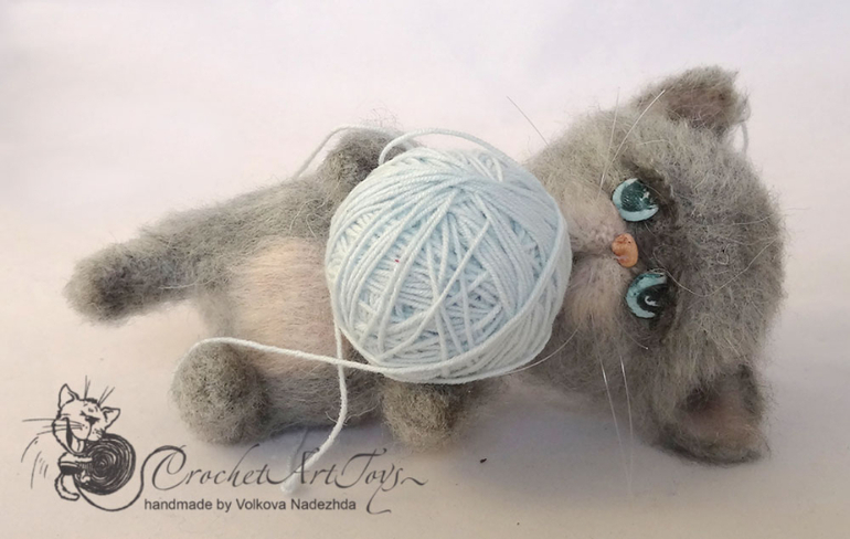 Амигуруми (вязаные игрушки)Связался котик по мк Илоны martik, пряжа мохерсодержащая бобинная, крючок 1.25. На проволочном каркасе. за счет чего лапки подвижны, голова на шплинте - поворотная. Носик и глазки слеплены из полимерной глины, тонирован сухой пастелью. Получилось очень много фото, не смогла выбрать)