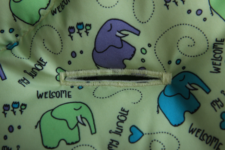 3. Чехол на стульчик для кормления Chicco Mamma. Принтованная плащёвая ткань с водонепроницаемым полимерным покрытием внутри, наполнитель - холлофайбер плотностью 500 гр., все прорези под ремни и отстрочки выполнены, жёсткая пластиковая вставка в нижней части чехла присутствует.