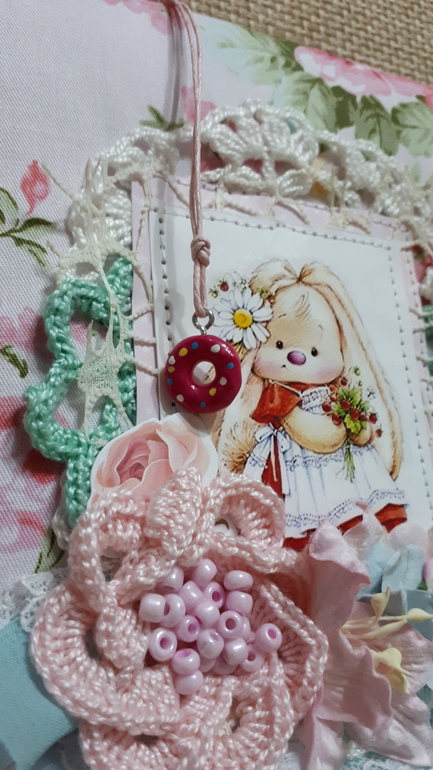 И еще вязанное кружево украсила бисером.