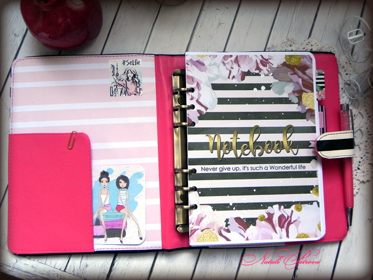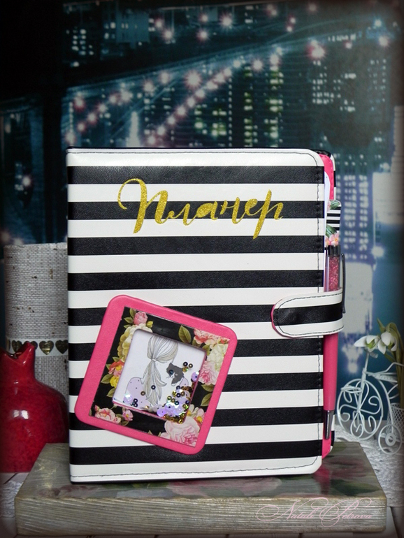 СкрапбукингСледующий на очереди ежедневник-планер со страницами размера А5 на кольцевом механизме, с кармашками на обложке. Яркий полосатик - мечта любой девушки.