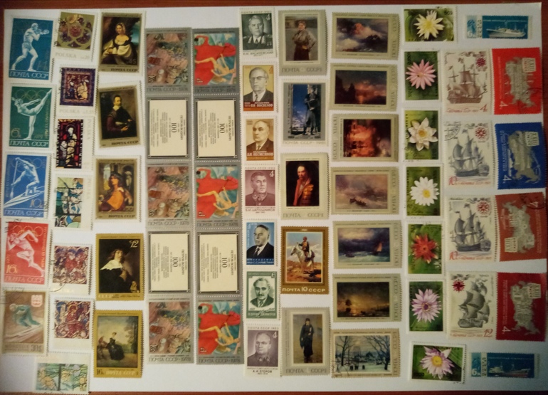 60 коллекционных марок, советских времен, на разные темы. Фото на листе А3 + что-то к чаю:)