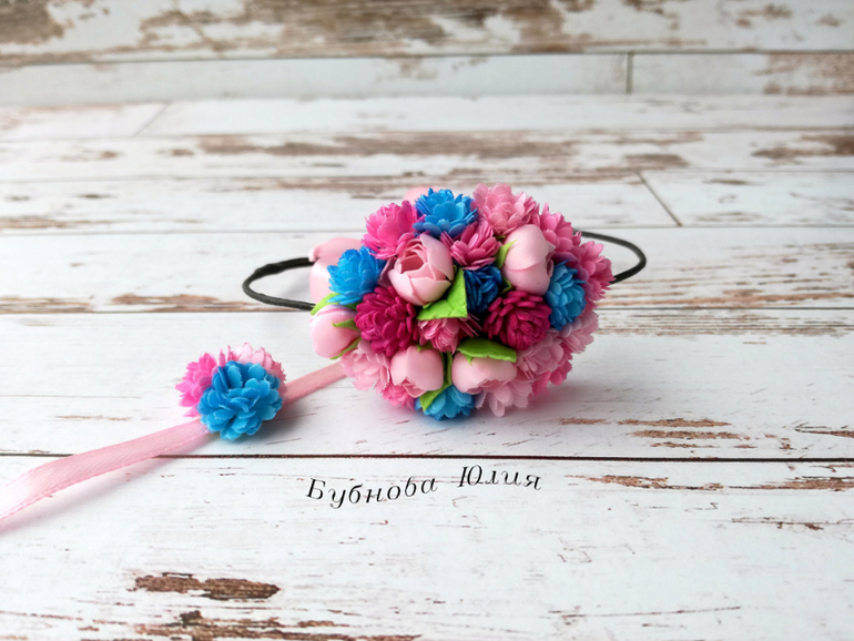 Цветы из ткани и форма. Канзаши. Украшения для волос.Размер композиции на веночке - 5,5см, диаметр самого большого цветочка - 1см. Размер браслетика - 1,5см.