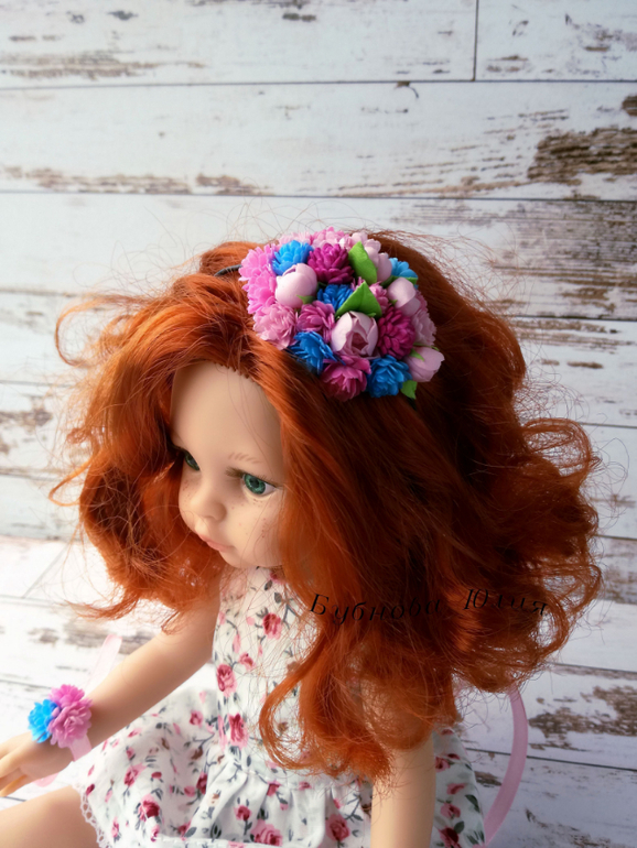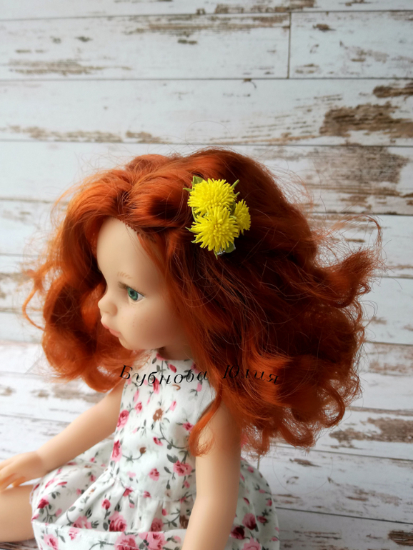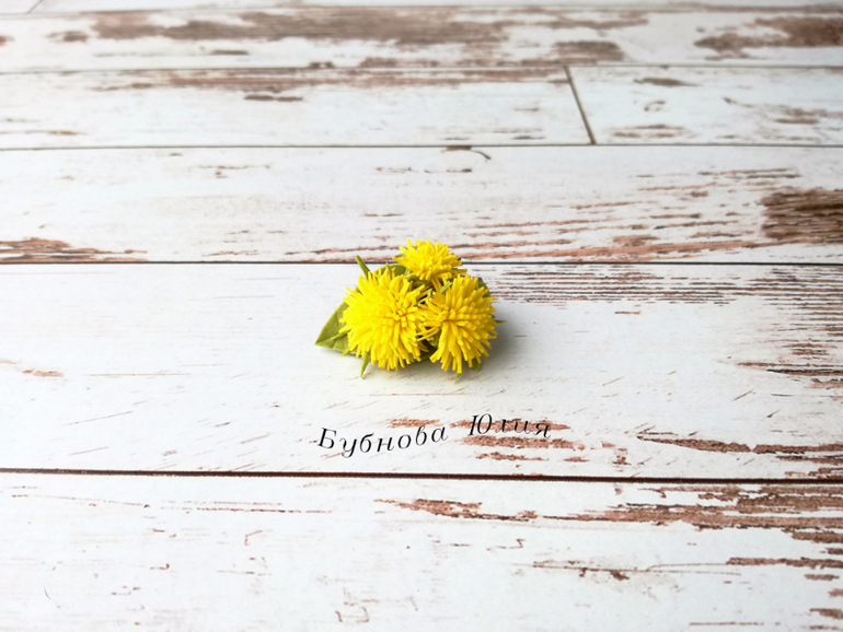 Зажим с одуванчиками для куколки. Размер композиции - 3см, диаметр самого большого цветочка - 1,5см.